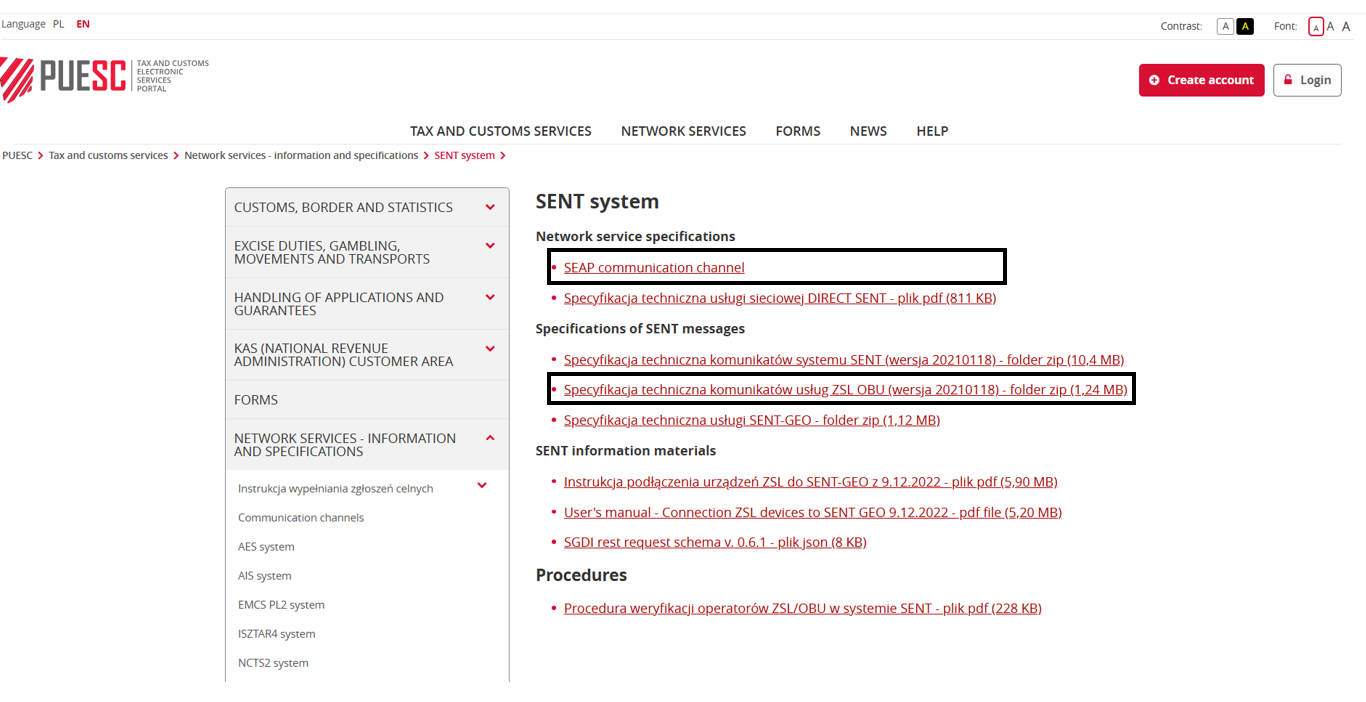 Mit einem Konto auf der PUESC-Plattform kann der Betreiber einer OBU-Bordeinheit bzw. eines externen Ortungsgeräts zwei Dienste aktivieren: e-TOLL und SENT. Um den SENT-Dienst anbieten zu können, ist es notwendig, sich mit dem SENT-GEO-System entsprechend zu konfigurieren. Während des Konfigurationsprozesses erhält der Betreiber einer OBU-Bordeinheit bzw. eines externen Ortungsgeräts den Endpunkt zurück, an den die SENT-Daten gesendet werden sollen. Entsprechende Unterlagen finden Sie unter https://puesc.gov.pl/uslugi/uslugi-sieciowe-informacje-i-specyfikacje/system-sent. Es sei an dieser Stelle auf die Unterschiede zwischen den Parametern der an das e-TOLL-System und das SENT-GEO-System übermittelten Daten hingewiesen.