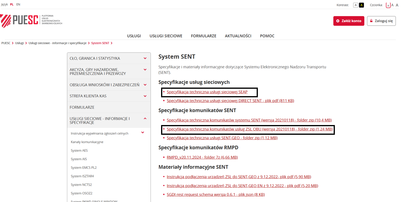 Posiadając konto na platformie PUESC operator OBU/ZSL ma możliwość aktywowania dwóch usług: e-TOLL oraz SENT. W celu świadczenia usługi SENT konieczne jest odpowiednie skonfigurowanie się z systemem SENT-GEO. Podczas procesu konfiguracji operator OBU/ZSL zwrotnie otrzyma endpoint, na który należy przesyłać dane SENT. Dokumentacja w tym zakresie dostępna jest na stronie https://puesc.gov.pl/uslugi/uslugi-sieciowe-informacje-i-specyfikacje/system-sent. Należy zwrócić uwagę na różnice w zakresie parametrów danych przekazywanych do systemu e-TOLL i systemu SENT-GEO.